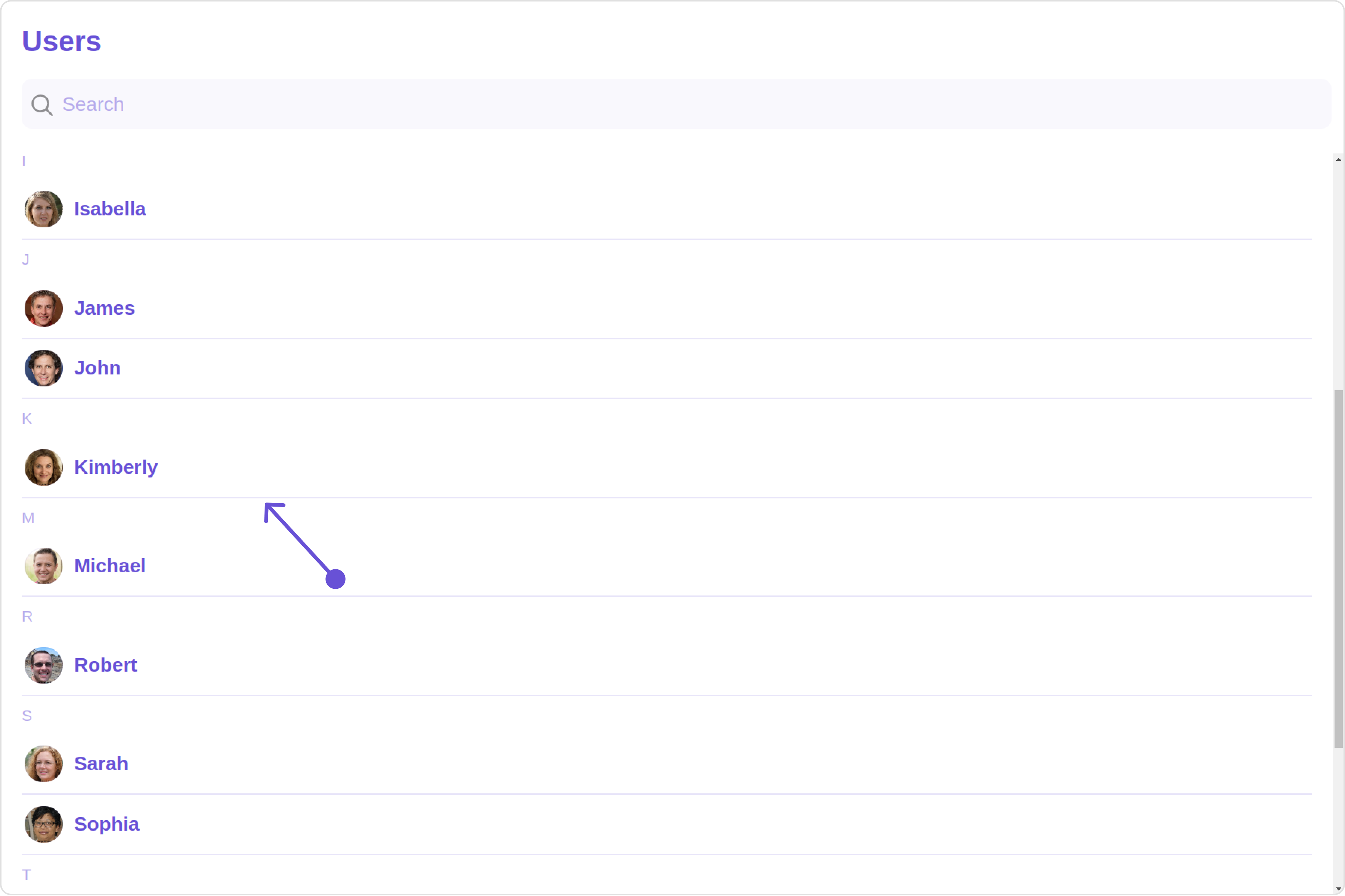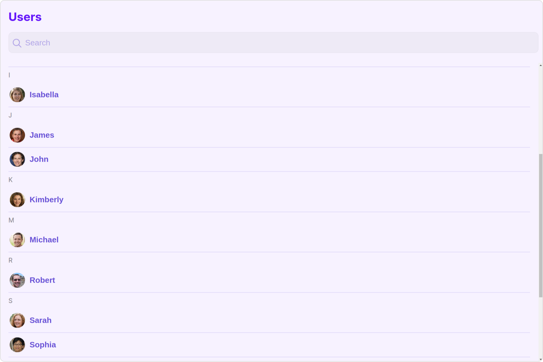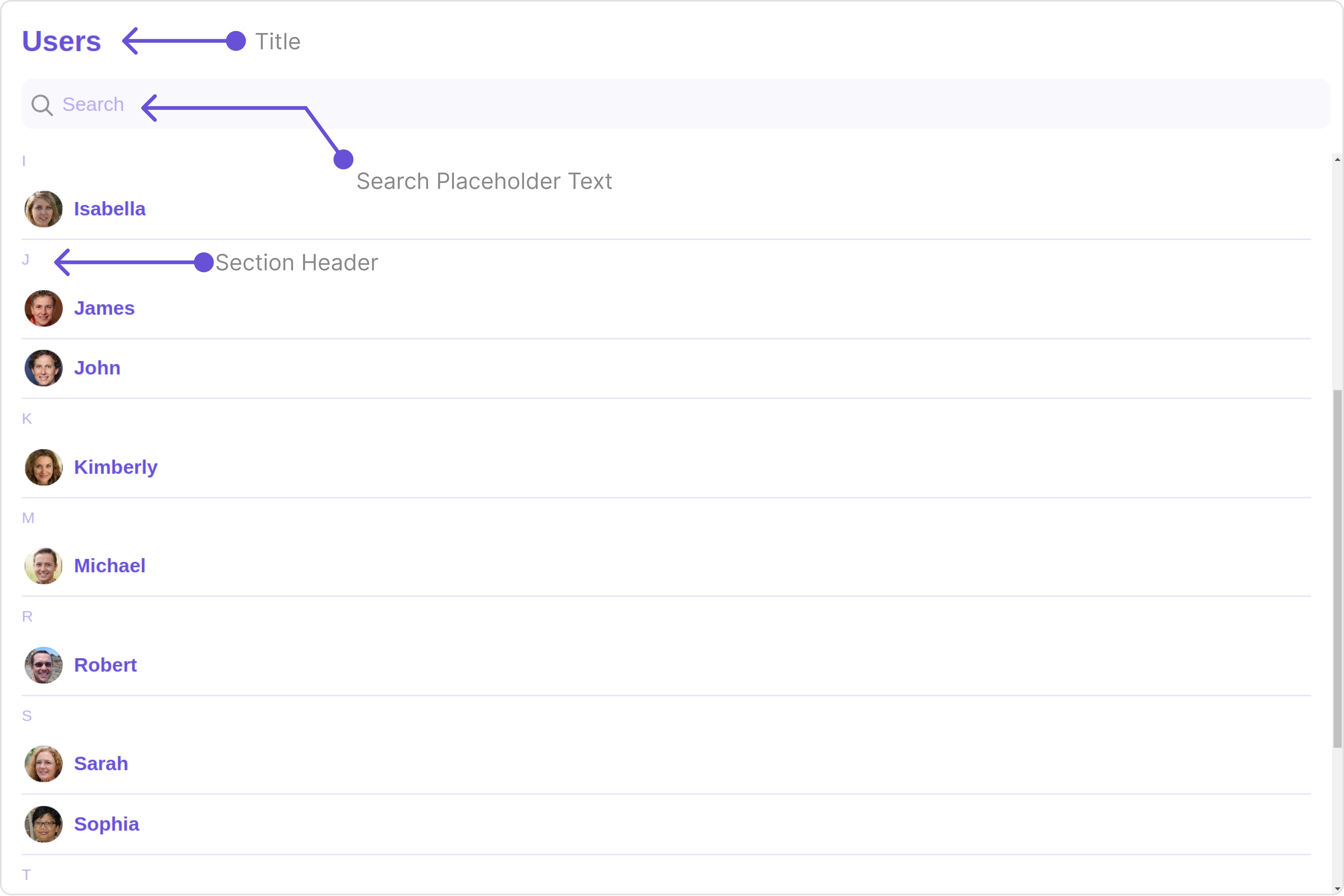 To fit your app’s design requirements, you can customize the appearance of the Users component. We provide exposed methods that allow you to modify the experience and behavior according to your specific needs.
